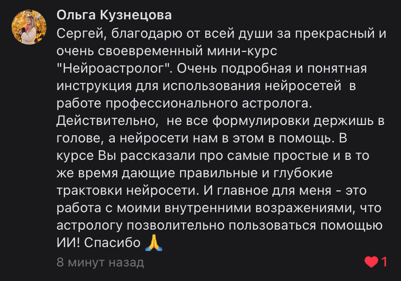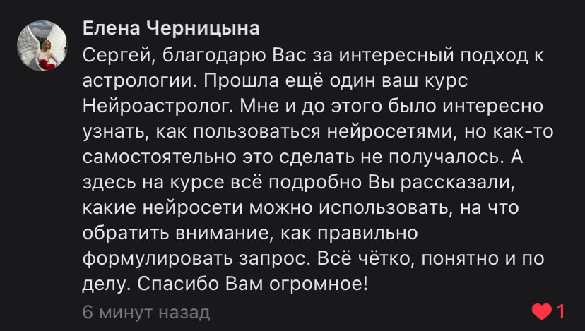 Нет, нейросети действительно уже могут давать качественные и глубокие описания в сфере астрологии. Я сам лично проверил их работу и в мини-курсе описываю, как вам правильно использовать этот инструмент.