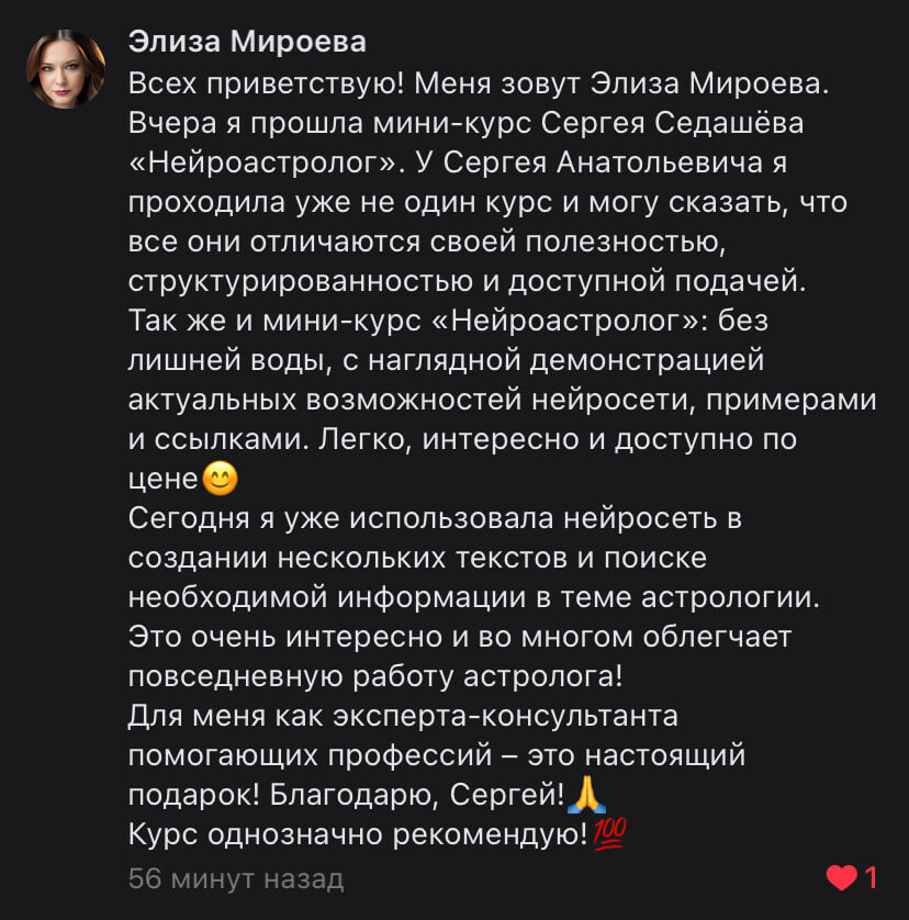 Посмотрите, что говорят ученики о мини-курсе «Нейроастролог»